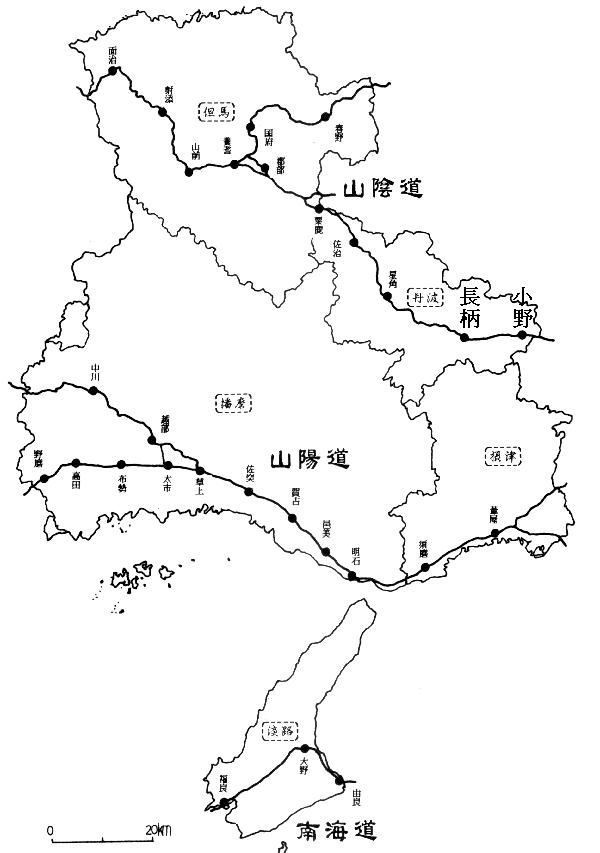 兵庫県の古代の道と駅家(別府洋二 「駅家の構造と機能」より 一部改)