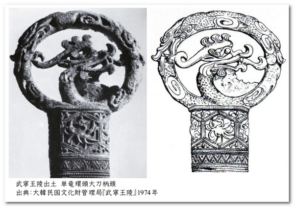 幸いにも百済の武寧王のお墓から単竜環頭大刀が発見されています。武寧王は、文献や墓誌から在位期間(在位:502年~523年)が判明していますので、これを起点とした編年が試みられています。
