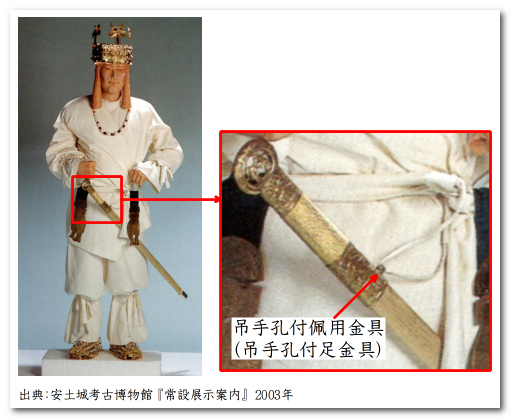 そして、新納氏は、銘文大刀の「吊手孔付佩用金具(吊手孔付足金具)」の形式からⅦ式、上の表の10段階の時期に箕谷2号墳の銘文大刀は製作されたのではないかと考えられています。